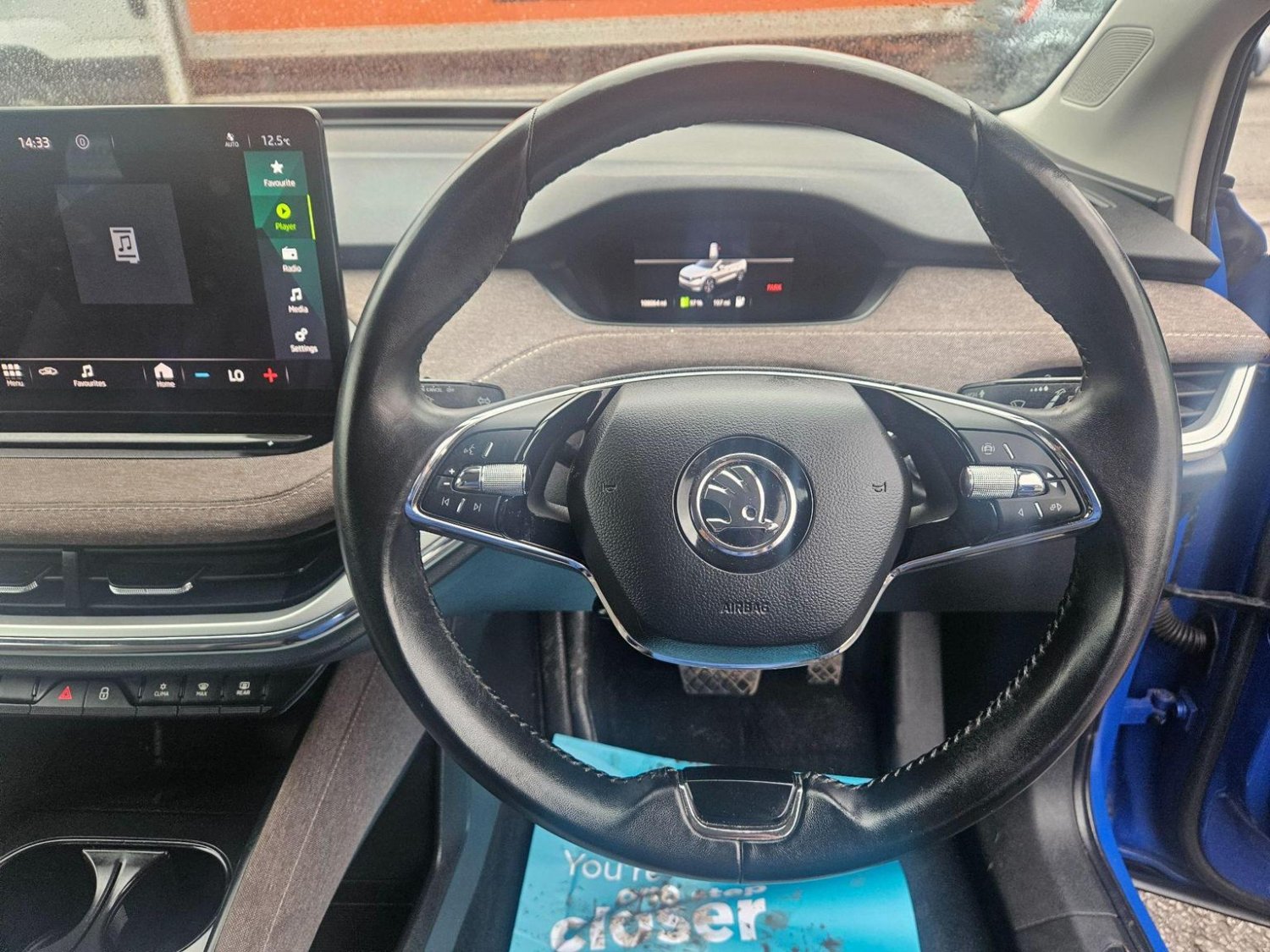 This is a superb one owner, new shape, Skoda Enyaq SUV presented in truly exceptional condition throughout. The vehicle comes with full documented service history from new .and really is a stunning all round car that would have cost almost £40,000 only 3 and a half yeas ago. Huge Specification Includes Virtual Cockpit, Touch Screen Satellite Navigation, Apple Car Play/Android Auto, AEB City Emergency Braking, Dual Zone Automatic Climate Control with Air Conditioning, Rear Parking Sensors with ParkPilot, Mirrorlink, Adaptive Cruise Control with variable speed limiter, Lane Departure Assist, plus all usual refinements. 1st to see will buy this superb vehicle. VAT QUALIFYING FOR BUSINESS PURPOSES, A VAT INVOICE WITH VAT SHOWN SEPERATELY CAN BE PROVIDED FOR BUSINESS OWNERS, THIS DOES NOT AFFECT PRIVATE BUYERS. ZERO EMISSIONS TFL/ULEZ & CAZ CLEAN AIR ZONE COMPLIANT EXEMPT. Over 120 vehicles in stock to drive away. ASK ABOUT OUR PROMPT NATIONWIDE DELIVERY SERVICE